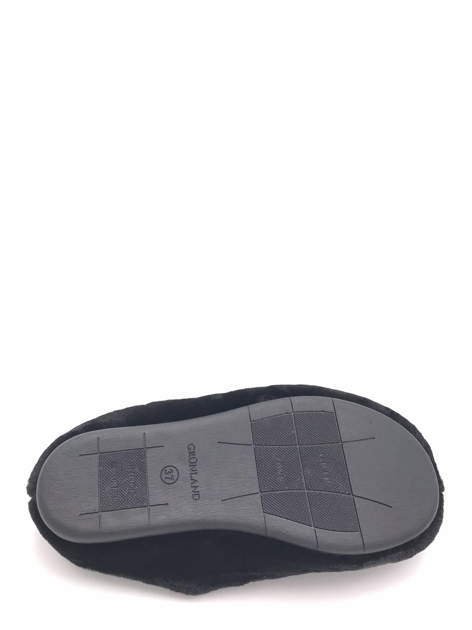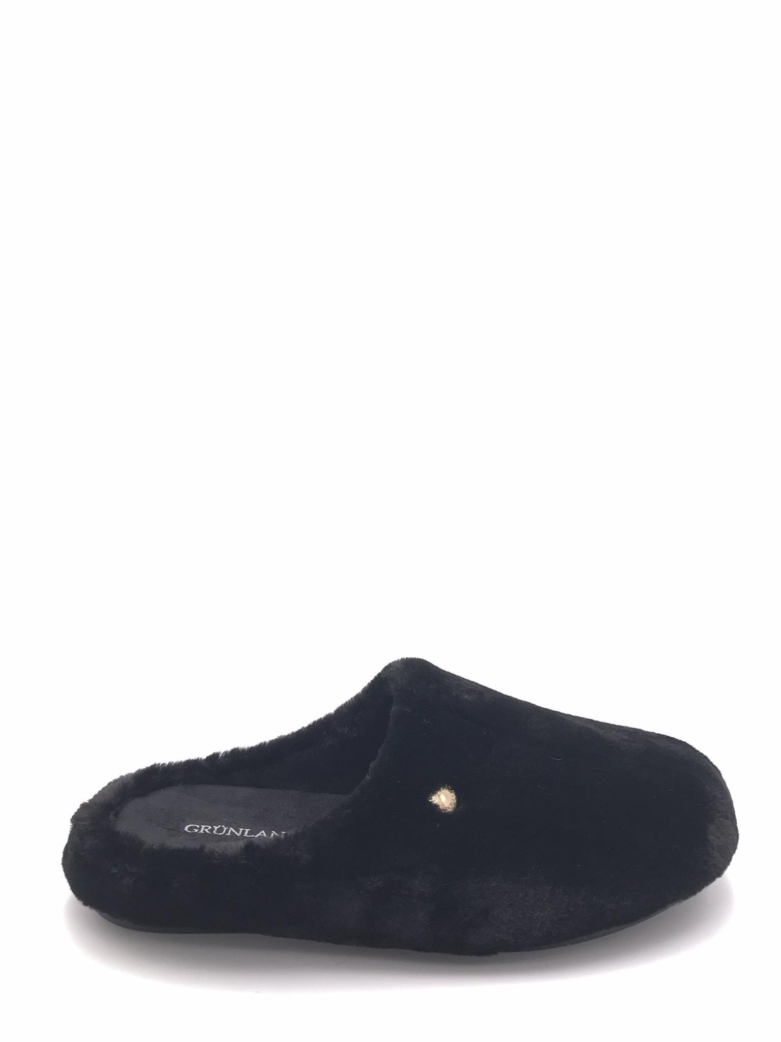 Ciabatta chiusa in panno effetto pelliccia color nero. Fodera interna in panno. Plantare morbido.