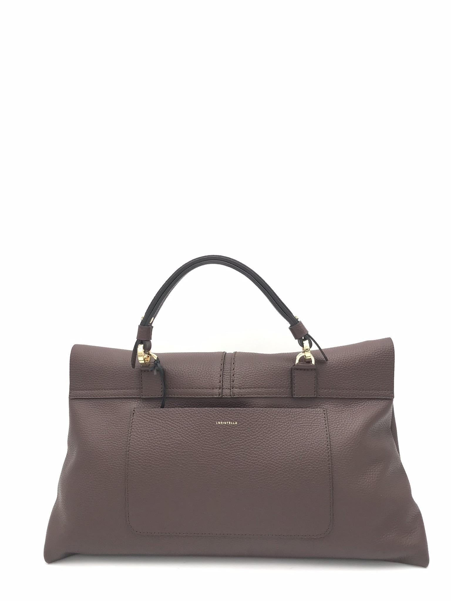 Borsa modello Kendall large in pelle martellata color cioccolato. Dettaglio con inserto in pelle nella patta frontale. Accessori metallici color oro. Manico altezza 14 cm. Chiusura superiore con cerniera e patta frontale. Fodera interna in tessuto. Tasca interna con cerniera, tasca porta cellulare. Tracolla in pelle staccabile e regolabile.