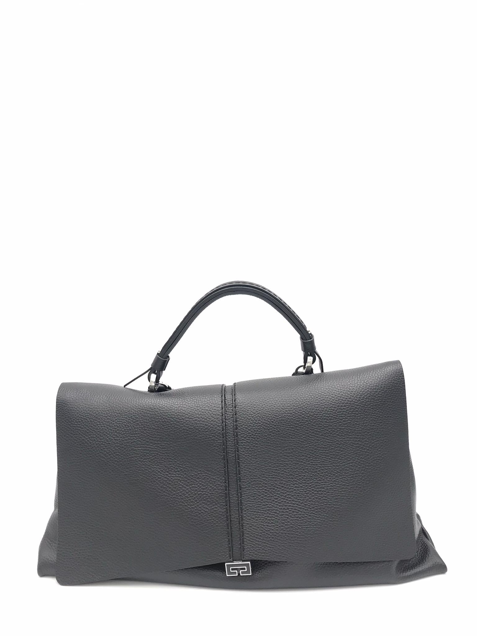 Borsa modello Kendall large in pelle martellata nera. Dettaglio con inserto in pelle nella patta frontale. Accessori metallici color oro. Manico altezza 14 cm. Chiusura superiore con cerniera e patta frontale. Fodera interna in tessuto. Tasca interna con cerniera, tasca porta cellulare. Tracolla in pelle staccabile e regolabile.