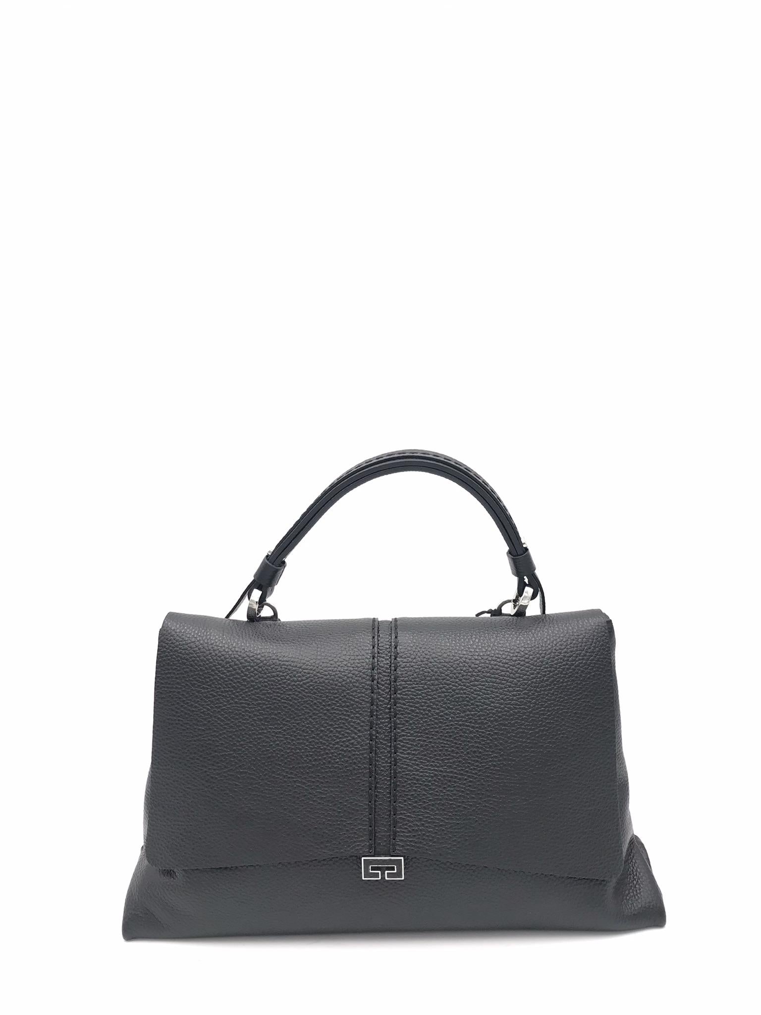 Borsa modello Kendall in vera pelle stampa dollaro color nero. Dettaglio con inserto in pelle nella patta frontale. Accessori metallici color argento. Manico altezza 14 cm. Chiusura superiore con cerniera e patta frontale. Fodera interna in tessuto. Tasca interna con cerniera, tasca porta cellulare. Tracolla in pelle staccabile e regolabile.