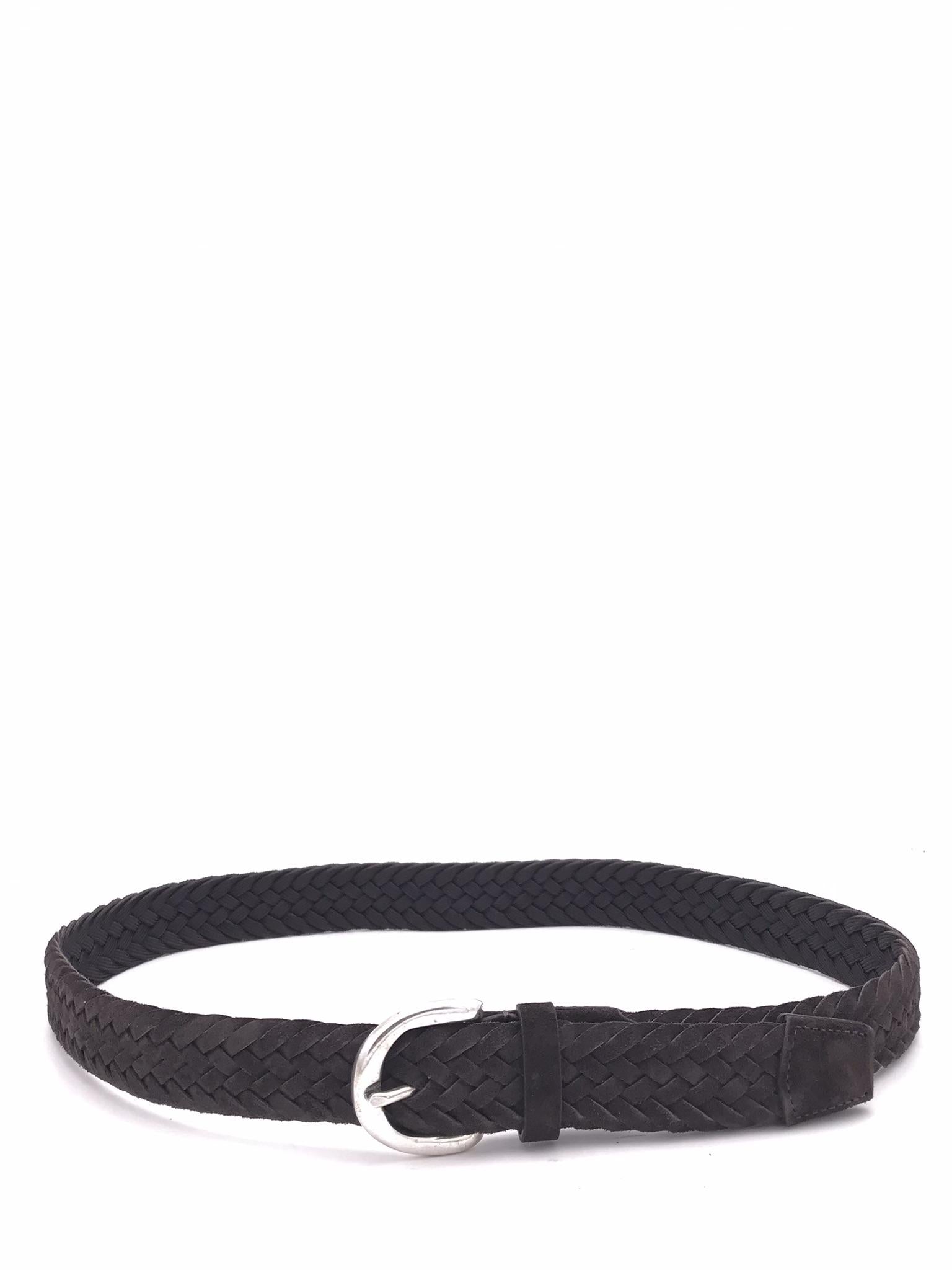 Cintura realizzata in crosta color moro intrecciata. Fibbia nichel.