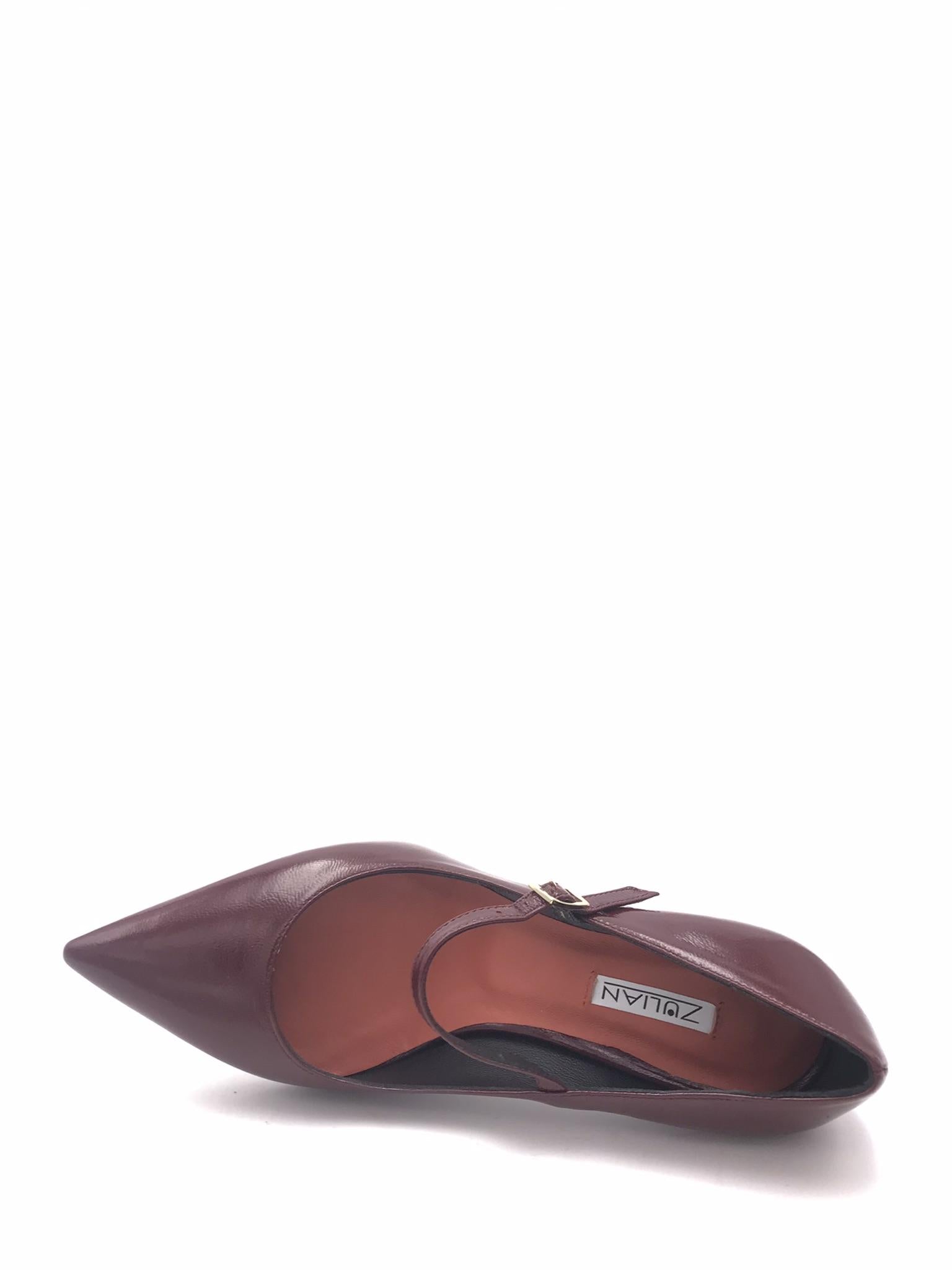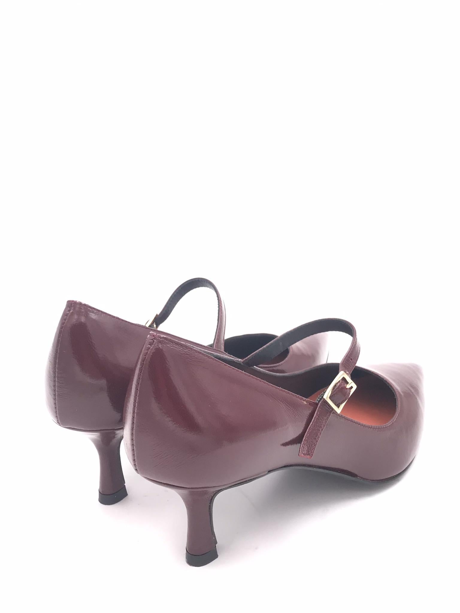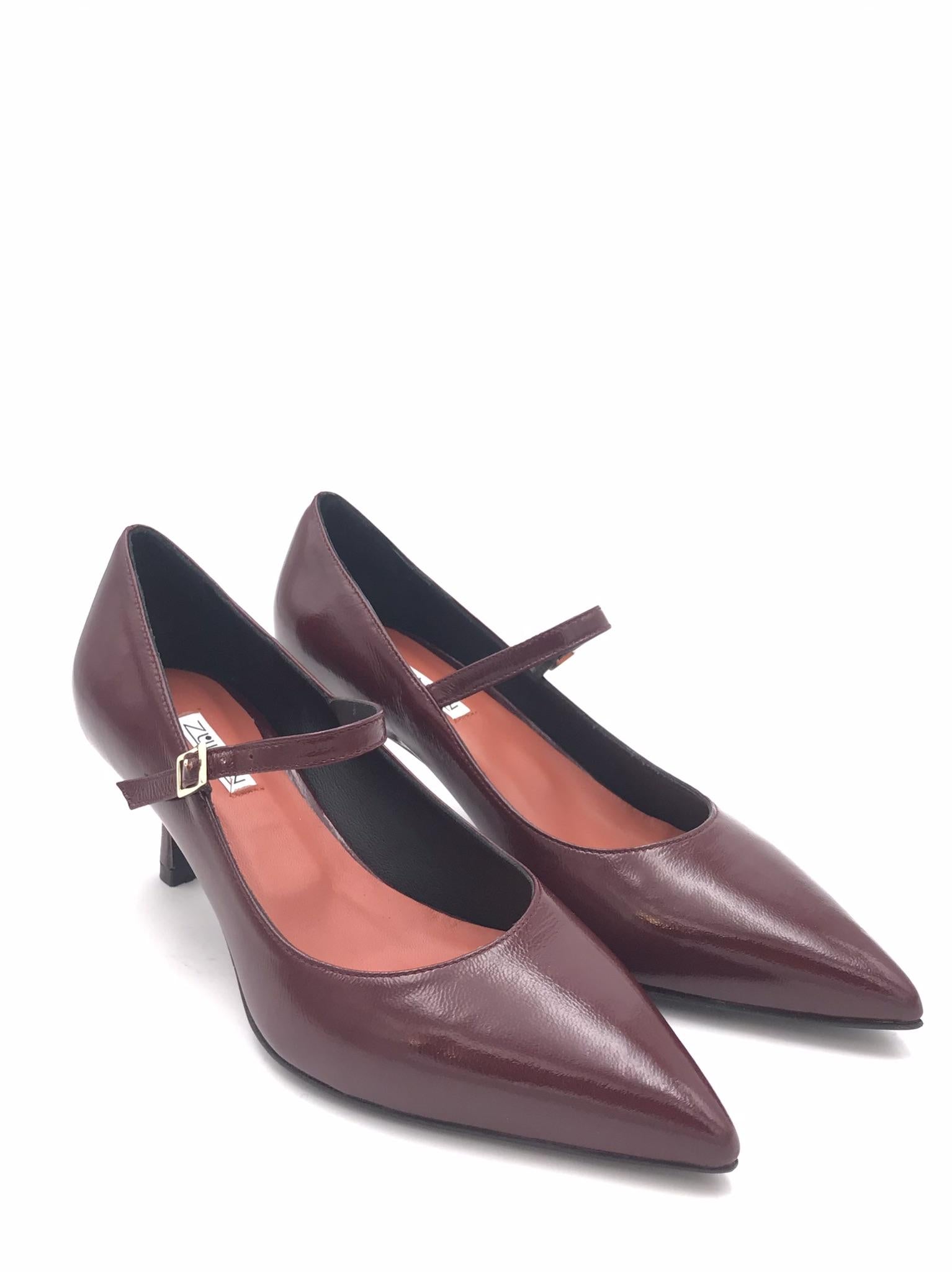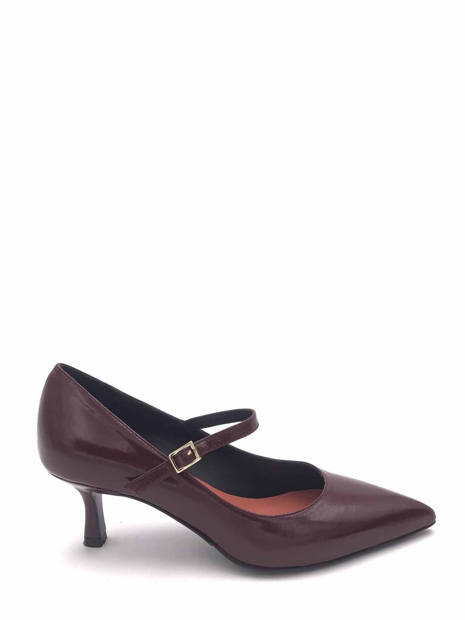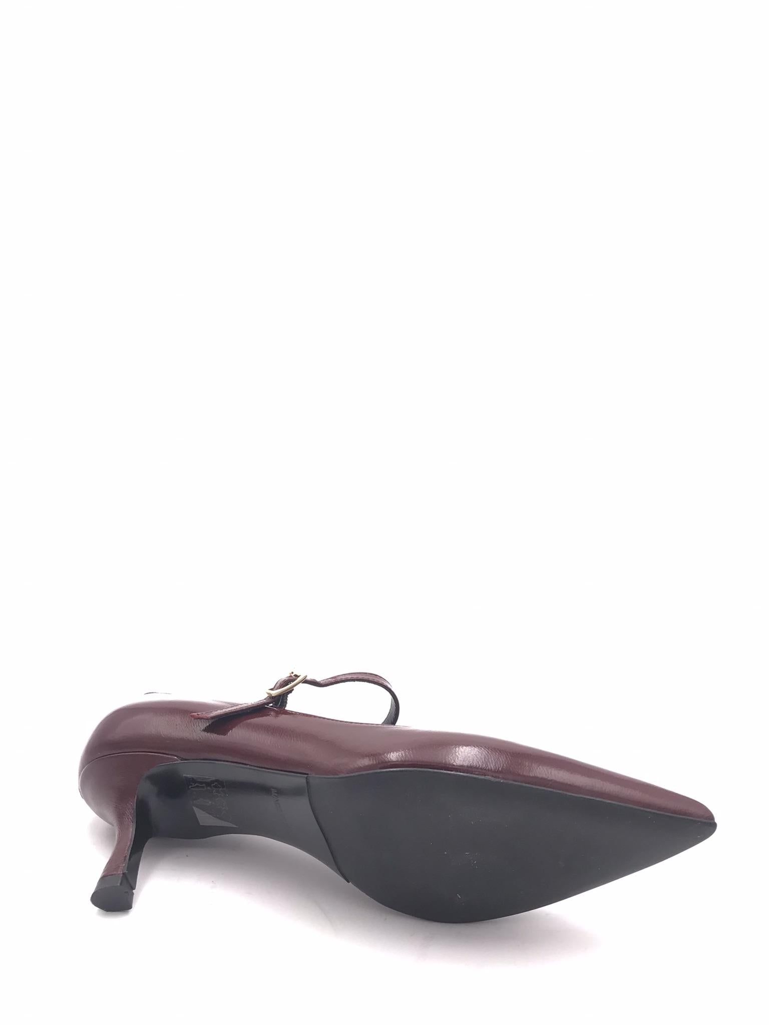 Decolletè realizzato in morbido naplak bordò. Cinturino regolabile nel collo piede. Forma affusolata. Fodera interna in pelle. Suola in cuoio con inserto in gomma antiscivolo. Tacco foderato altezza 5 cm. Lavorazione artigianale.