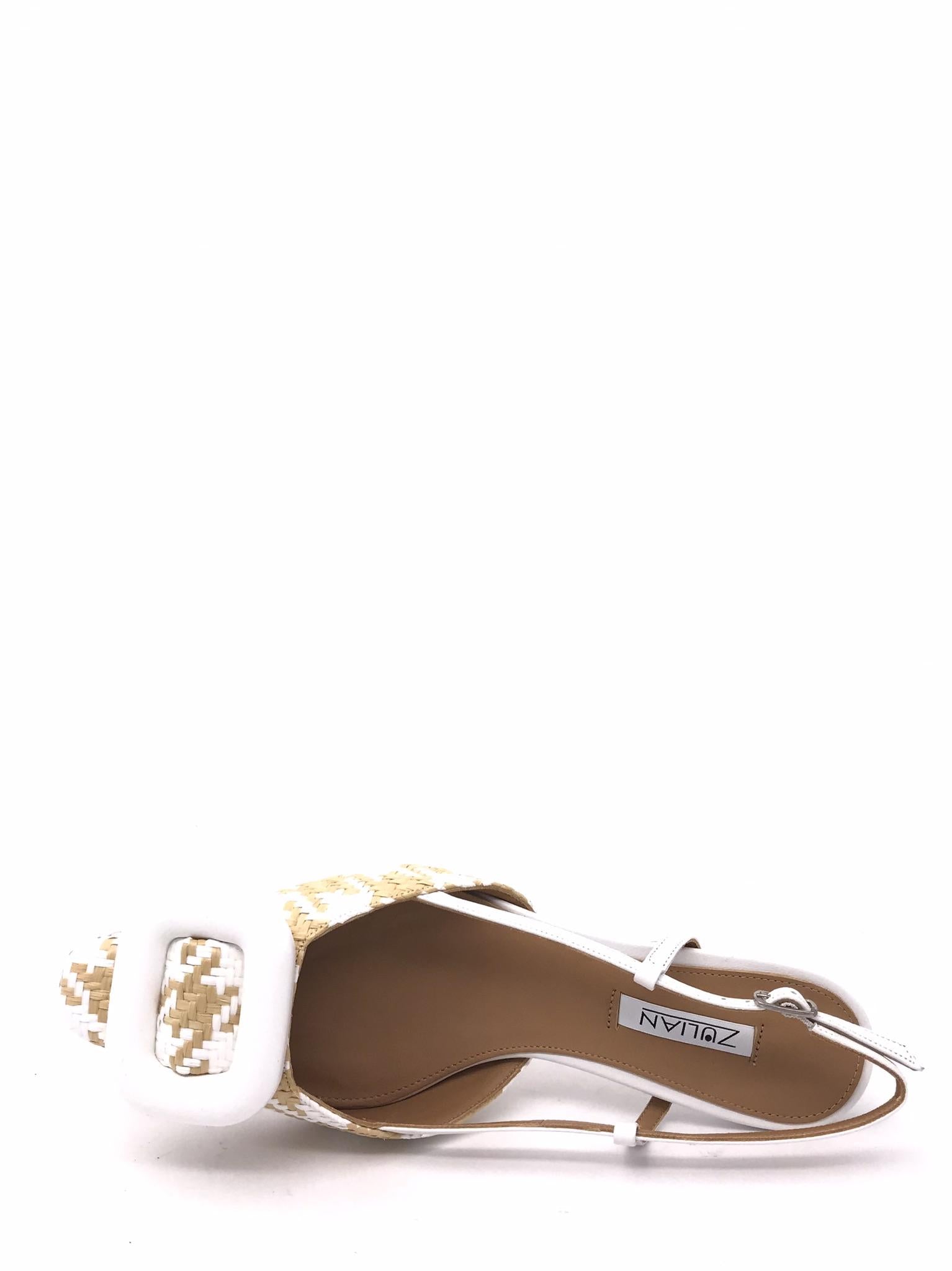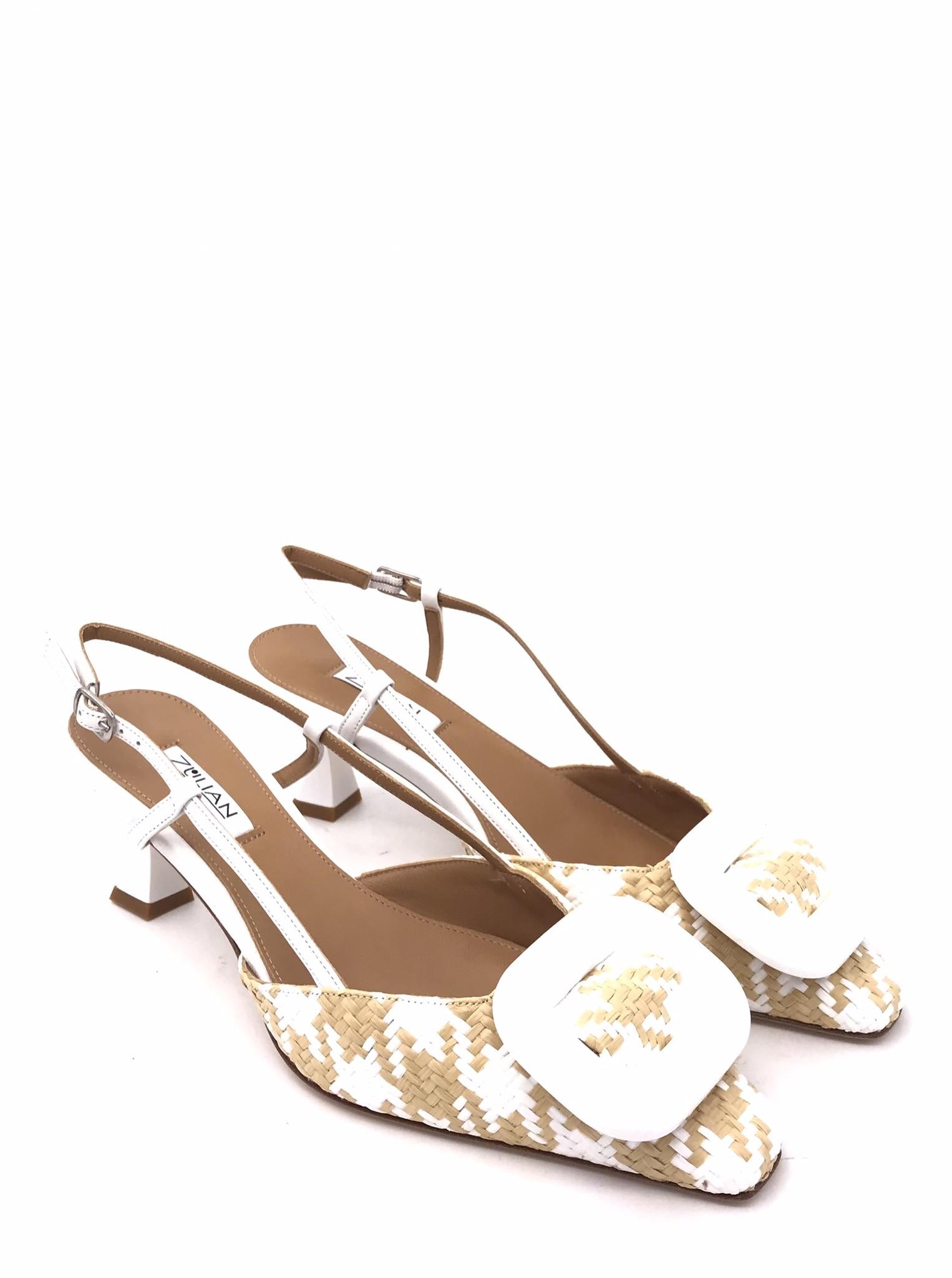 Sling back Ariadne in raffia pied de poul bianco-naturale