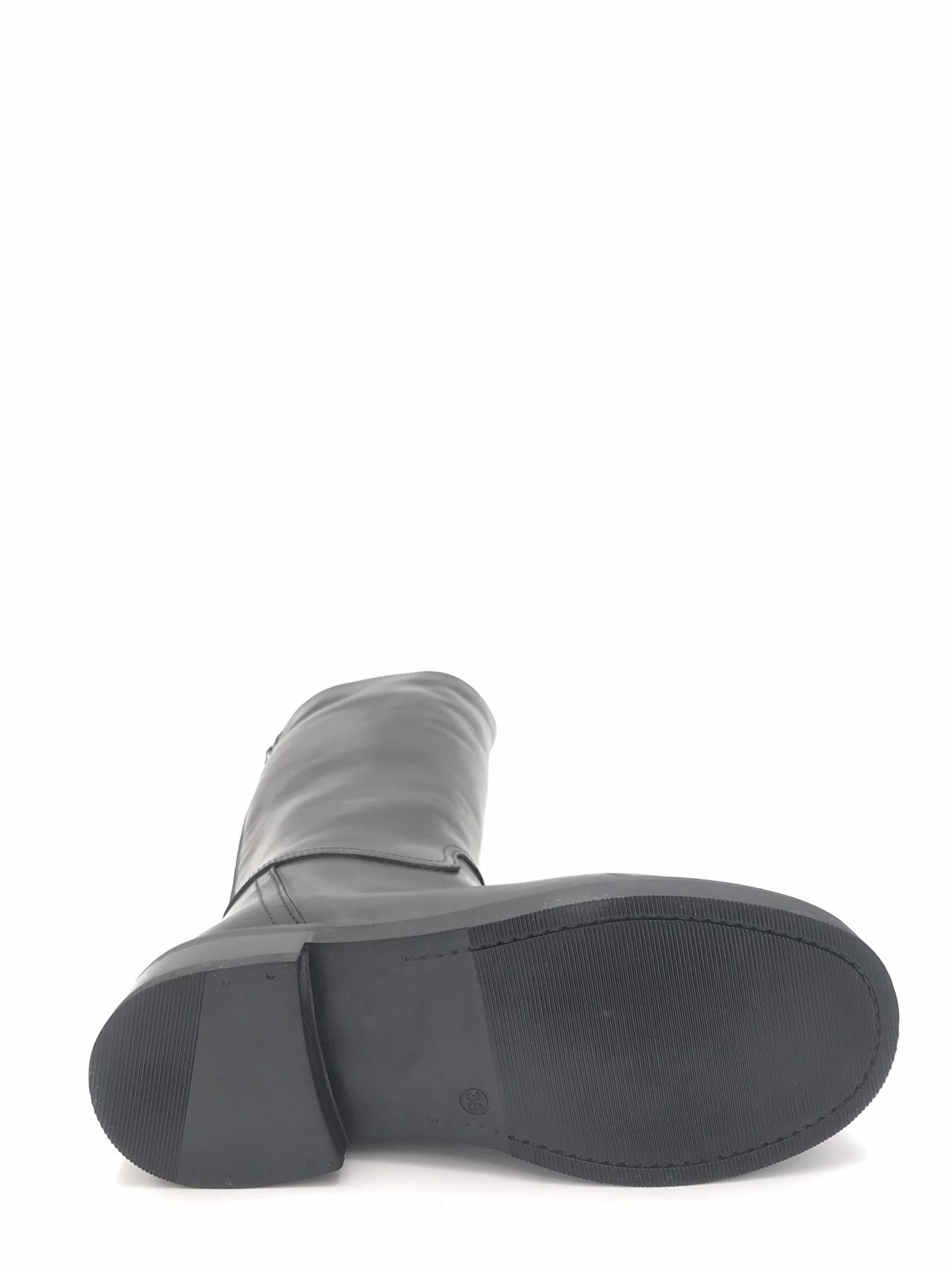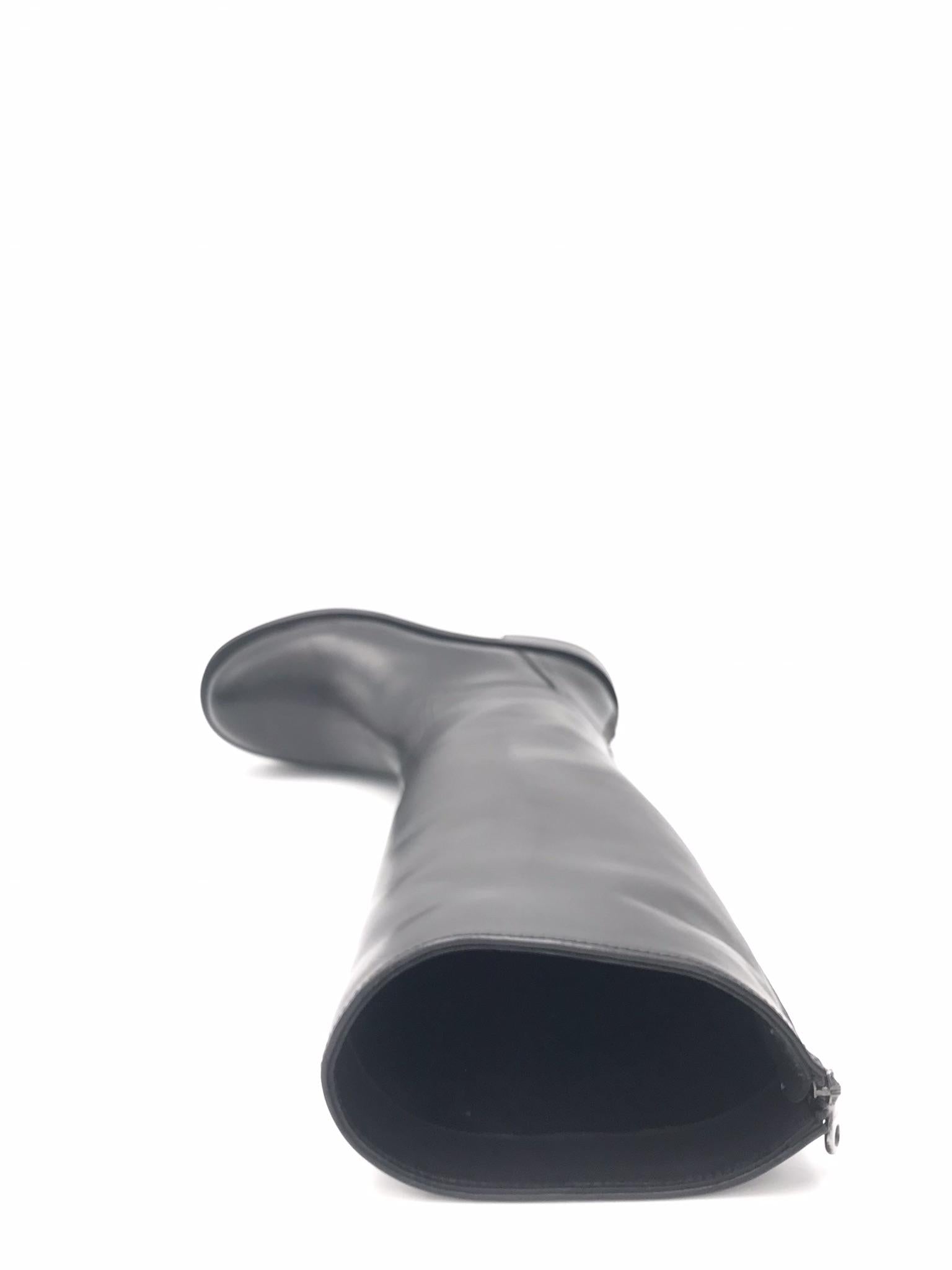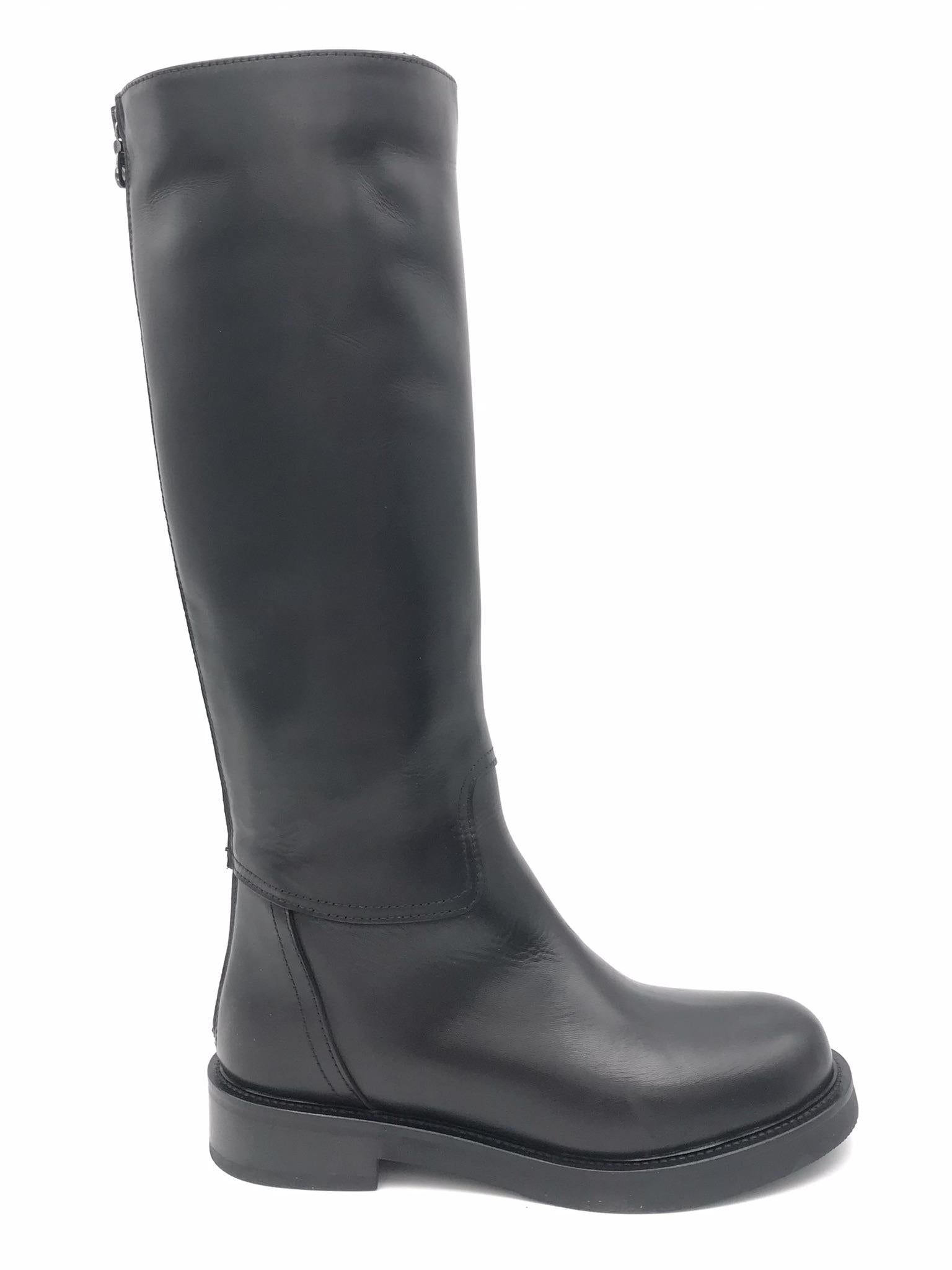 Stivale realizzato in pelle nera. Gambale largo. Forma arrotondata. Zip nella parte posteriore del gambale. Fodera interna in pelle. Suola in gomma. Lavorazione artigianale