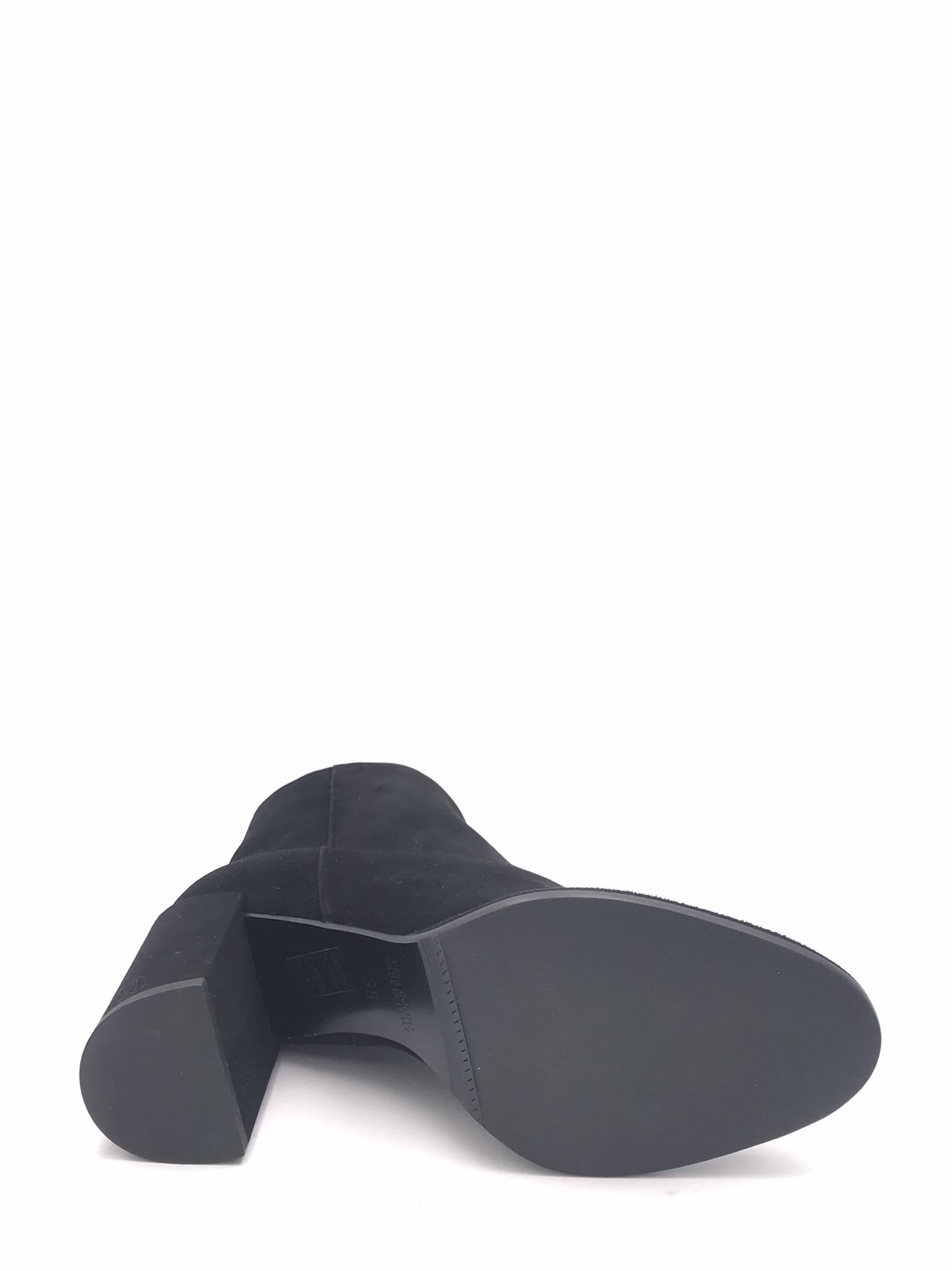 Tronchetti in camoscio color nero. Forma arrotondata. Zip di chiusura. Fodera interna in pelle. Tacco foderato in tinta altezza 7 cm. Fondo in gomma con guardolo in camoscio. Lavorazione artigianale